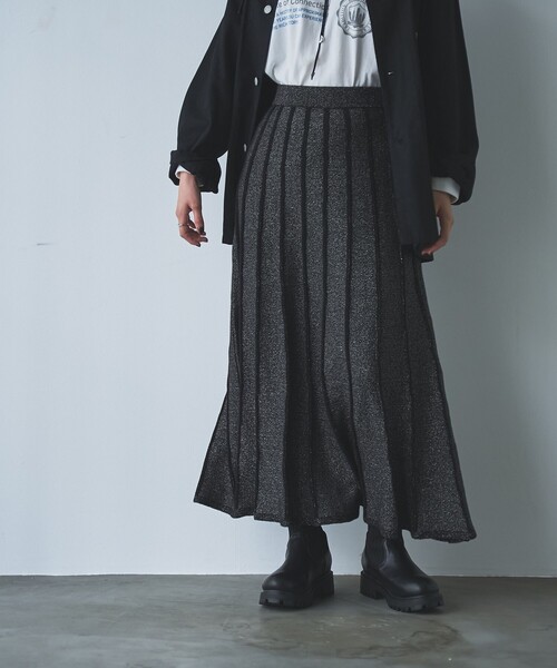 程よいラメ感がコーディネートを華やかに仕上げてくれるプリーツスカート ■デザイン/素材 ラメプレーティングで仕上げたニット素材のプリーツスカート。 ウエストはゴム仕様でフィット感のある着心地です。 裾にむけて広がるプリーツなので、ボリュームのあるルーズなスウェットやプリントロンTなどとの相性も◎ 今年らしいスタイリングが楽しめるトレンドライクな1着です。 透け感:なし 生地の厚さ:普通 光沢感:ややあり 裏地:なし ウエストゴム:あり サイドポケット:なし 家庭洗濯:手洗い可能 【注意点】 ※撮影商品はサンプルの為、実際の仕様と異なる場合がございます。 ※画像の商品は光の照射や角度、お使いのモニター環境により、実物と色味が異なる場合がございます。スタジオ物撮りの画像が実物の色味に一番近くなっております。 ※予約商品の場合、お届け予定はあくまでも目安となります。 生産の都合上、お届け時期が前後したり実店舗入荷時期とずれる場合がございますので、あらかじめご了承ください。 品名:ラメプリーツニットSK 品番:76706460236
