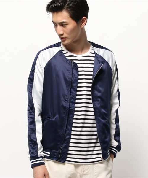 ノーカラーで仕上げたスカジャン。裾や袖のリブに施されたラインデザインも手軽に着こなしのアクセントになります。定番デザインのスカジャンは、年をまたいで長くご愛用頂けます。程よい厚みのしっかりした生地を使用し、軽くて合わせやすいアウターとしても着まわしのきくアイテム。デニムやネルは勿論、今季はスラックスやシャツと合わせたシックな着こなしもオススメです。 WEGOの特集ページはコチラ