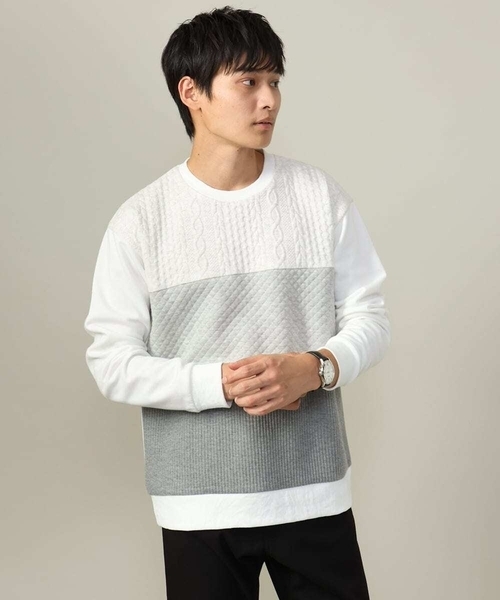 ◆前身頃に凹凸感のあるジャカード素材を取り入れた切替えデザインカットソー◆【デザイン】毎年大人気の柔らかさのあるフクレジャカード切替カットソー。前身頃に凹凸感のある高見えするジャカード素材で切り替えたデザインがポイントです。上品な配色でまとめることで様々なアウターのインナーとしても使用できる汎用性の高いアイテムです。【素材】凹凸感のあるジャカード編み素材を前身頃に取り入れたのがこだわりポイント。ご自宅で洗濯機洗いができるためデイリーユースに気軽に着用できるのも嬉しいポイントです。【スタイリング】一枚着はもちろん、冬物アウターのインナーにもさり気ないアクセントになる汎用性の高いアイテムです。ボトムはきれい目スタイルであればスラックス合わせ、カジュアルスタイルであればゆとりのあるパンツとあわせるとバランスが良いコーディネートの完成です。----------------透け感:なし裏地:なし伸縮性:あり光沢感:なし生地の厚さ:普通----------------≪お気に入り登録機能の使い方≫■商品のお気に入り登録(ハートマークをクリック)再入荷通知や値下げ等、お得なご案内を受けることができます。----------------※商品画像は、光の当たり具合やパソコンなどの閲覧環境により実際の色味と異なって見える場合がございます。 商品の色味の目安は商品単体の画像をご参照ください。
