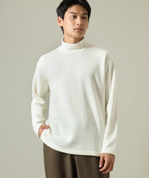 ◆グッドスウェットシリーズ!きれいめ素材の畦ダブルフェイスを使用した厚手のハイネックカットソー◆【デザイン】着るだけで簡単にキマル!ニットが苦手な方にも最適なきれいめ大人スウェットです。どんなコーディネートにも合わせやすいシンプルなカットソーは上品な見え方で1ランクアップ。締め付け感の少ない首元デザインが程良い抜け感を生み出してくれるアイテム。ゆとりのあるセミワイドシルエットでラフ過ぎず、身体のラインが出ずらいのも嬉しいポイント。ウールコートやニットカーディガンなどのきれいめスタイルとしても取り入れやすい汎用性の高いアイテムです。【素材】程良くハリ感・肉感のある表面感のあるアゼ編みジャージー素材を使用しており、秋から春まで長い期間着用できます。洗濯機で気軽に洗えてお手入れも簡単、デイリーユースに着用できるのも嬉しいポイントです。【スタイリング】上品な雰囲気なので、ジャケットや冬にはウールコート合わせが特にオススメです。今季トレンドのカーディガン合わせも大人っぽい着こなしになります。ボトムはきれい目スタイルであればスラックス合わせ、カジュアルスタイルであればゆとりのあるパンツとあわせるとバランスが良いコーディネートの完成です。----------------透け感:なし裏地:なし伸縮性:あり光沢感:なし生地の厚さ:普通----------------≪お気に入り登録機能の使い方≫■商品のお気に入り登録(ハートマークをクリック)再入荷通知や値下げ等、お得なご案内を受けることができます。----------------※商品画像は、光の当たり具合やパソコンなどの閲覧環境により実際の色味と異なって見える場合がございます。 商品の色味の目安は商品単体の画像をご参照ください。