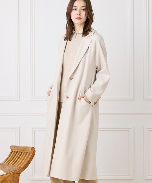 マニッシュなデザインのロングコート。オーバーサイズにすることで抜け感を演出し、シンプルなデザインながらも袖の釦や配色糸など細部に拘りました。メルトン加工を施した滑らかなウール生地は軽くて暖かいのか特徴です。コーディネートを選ばず合わせやすく、身に纏うだけでワンランク上のスタイルに導いてくれる、大人の女性にふさわしい1着です。・ポケットあり■サンプル撮影商品■こちらの商品はサンプルでの撮影となっております。実際の商品とは、サイズや色味、素材、デザイン等の仕様が若干変更になる場合がございます。