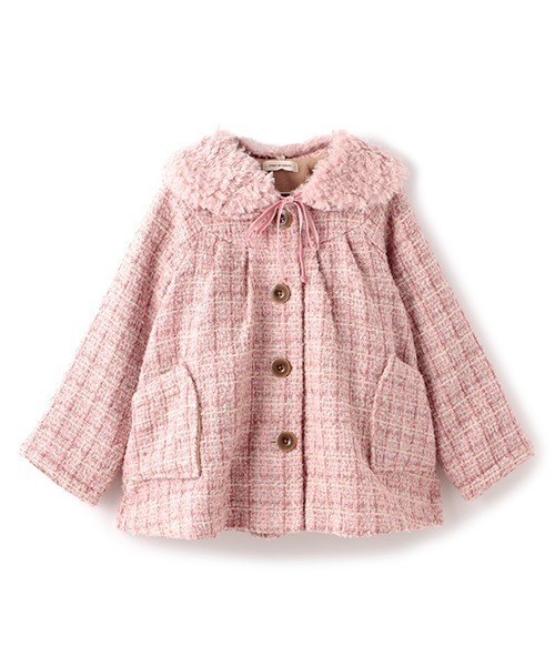 ロービング糸やラメ糸をミックスさせてざっくり織り上げた、ツイード素材のコートです。 裏には肌触りの良いボアを合わせており、寒い季節にもあたたかく着られます。 ティペットはつけ外せるため、気分によって着こなしを変えられるのも魅力です。 内側にお名前を記入できるタグがついています。 【透け感】透けない 【生地の厚さ】厚い 【伸縮性】なし 【裏地】あり 【ポケット】あり 【アジャスター】なし