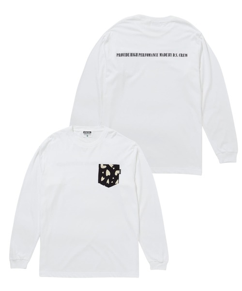 ハートやレオパードなどの柄をあしらったポケットが見る者の目を惹く一枚。バックにもプリントを配置。丈夫で伸びにくいしっかりとした厚みのある天竺生地を採用。首まわりの縫製に「ダブルステッチ」を採用し、丈夫な襟元を実現。*モデルは身長172cm体重60kgで、XLサイズを着用しています。