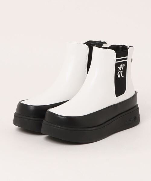 バックフロントについたジップで脱ぎ履きしやすい厚底ショートブーツ。スタイルアップにおすすめの一足。付属のシールを貼ってオリジナルデザインが楽しめるブーツです。厚底/サイドゴア/ガールズ/女の子/キッズブーツ/ショートブーツ/ファスナー付き/ANAP/アナップ/アナップガール
