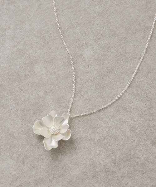 ■アイテム お花の形をモチーフにした立体的なネックレス。 シンプルなトップスにつけるだけでコーディネートのポイントに。 シルバー一色使いなので派手になりすぎず、上品な印象です。 ▼同シリーズ 花ピアス(スイレン) ■素材・洗濯表示 素材:合金 ※着用時は、必ず取扱い表示・タグをご確認の上、お取り扱い下さい。 《商品について》 ・サンプルの為、素材情報、洗濯表示については企画段階の情報を記載しております。公的機関での試験データ結果を受け、量産にあたり混率や洗濯方法の変更が発生する場合がございますので、ご了承くださいませ。 ・サンプルでの撮影、計測をしております。商品の仕様が一部変更になる場合がございます。 ・撮影サンプル品はブランドタグがついておりません。製品にはタグがつきますので、製品の表に縫い糸が見える場合がございます。 ・工場の生産の都合上、納期が変更になる場合がございます。検品や輸送の関係で、発送日が前後しますのでご了承ください。また、入荷状況により、お客様への発送が店頭販売より遅れる場合もございます。 ・店頭に陳列していた商品も含まれる場合がございます。 《画像について》 ご覧頂いている商品の写真につきましては、できるだけ実物の色に近くなるように努めておりますが お使いの環境(モニター、ブラウザ等)の違いにより、色の見え方が実物と若干異なる場合がございます。 予めご了承ください。 《ハートをタップして商品のお気に入り登録》 登録カラーの商品の「残りわずか」「再入荷」「値下げ」通知を受け取ることができます。 各ショップアプリにてブランドフォロー 新商品などの入荷情報、最新のニュースやお得な情報を受け取ることができます。