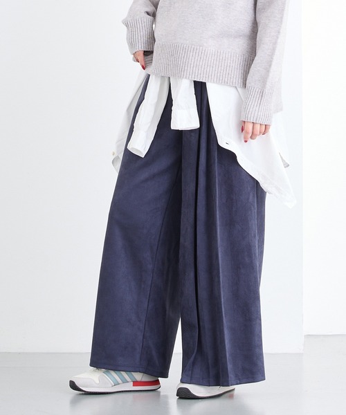 【プリーツパンツ】 【Fabric】 スエードタッチで程よく落ち感のある微起毛の合繊素材 【Design】 人気のアシメプリーツパンツから、冬らしい素材を使用し新登場。 後ろゴムは着脱ラクチンがストレスフリーな嬉しいポイント。 【Styling】 落ち着いた色合いなので、コーディネートしやすく◎ しゃれ感のあるアイテムながらも、ストレスフリーな履き心地を実現するウエストゴムデザインで、お手持ちのトップスに合わせるだけでスタイリングの鮮度がアップします。。 ------------------------- ■透け感:無 ■裏地:なし ■伸縮性:若干 ■光沢感:なし ■生地の厚さ:普通 ------------------------- 【フェイクスエード素材】 素材の性質上、デニム同様、色落ちや色移りの可能性がございますので、 白・淡い色との組み合わせなど、お取扱いにご注意下さい。 ☆★お買い物をお楽しみいただく為に★☆ ★商品のお気に入り登録 完売カラーの再入荷通知や、ラスト1点の通知、 セールの通知も受け取ることができます。 ★ブランドのお気に入り登録 新商品や再入荷等、ブランドのお得な情報を いち早く受け取ることができます。