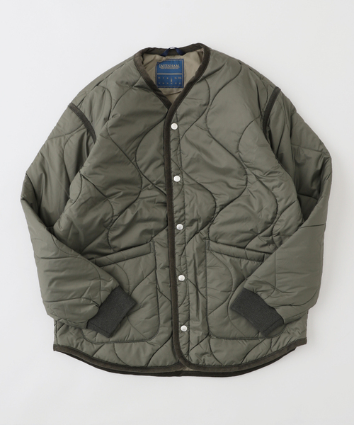 OLIVEGREEN ROYALPURPLE ボクシーなシルエットのライナージャケットです。 伝統に敬意を表し、オリジナルホースラグに使われていたパターンでキルティングしています。軽くて暖かい中綿入りのキルティングで、裾は段差のある計算されたシルエットが特徴です。 袖口はリブ編みを、また、オーガニックコットンのコーデュロイバインディング、2つのパッチポケットとメタルスタッドボタン留めで仕上げています。 【LAVENHAM / ラベンハム】 ロンドン北東部サフォーク州の小さな美しい村に1969年設立されたラベンハム。同年ホース・ブランケットを発表。1972年にはラベンハムを象徴するダイヤモンドキルティングジャケットを発表。ラベンハムを象徴する定番のダイヤモンドキルトは、ダイヤモンド型の角を交差させ、伸縮性のあるナイロン上糸と、毛羽立たせたポリエステル下糸を使用することでほつれを防ぎ、耐久性を高めています。全ての商品は、サフォーク州サドバリーの自社工場で製造。生地、スタッド、ウェッビング等を厳選し、一着ずつ丁寧に作る製品は実用的で耐久性に優れています。 本体:洗濯機洗い(弱)
