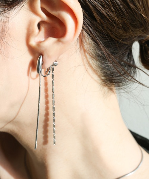 -point- & -styling-2種類の華奢なチェーンが組み合わさった上品なデザイン。頬あたりで揺れるチェーンは女性らしさを演出してくれます。ロングシルエットで小顔効果も◎主張しすぎない程よいサイズ感でどんなファッションにも合わせやすいアイテムです。結婚式や入学式・卒業式などのオケージョン、パーティーシーンにもおすすめです。ダブルチェーンイヤリング----------------------------素材 真鍮・合金----------------------------※モニター・環境等により実際の商品と多少色味が異なって表示される場合がございます。 予めご了承をお願いいたします。=======================■袋梱包の為、染料による特有の匂いが抜けきれず、匂いがする場合がございますが不良品にはあたりません。 上記注意点での返品、交換はお断りします。ご了承の上お買い求めくださいませ。■本製品は生産過程におきまして色味、サイズ感等若干の誤差が出る場合がございます。予めご了承くださいませ。=======================【お買いものをお楽しみいただく為に!】▼商品のお気に入り登録完売カラーの再入荷通知や、ラスト1点の通知、セールの通知も受け取ることができます。▼ブランドのお気に入り登録新商品や再入荷など、いち早くブランドのお得な情報を受け取ることができます!