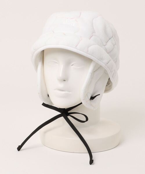 ブービーバードのシルエットをキルティングの柄として落とし込んだフリースハット 〈素材特性〉 程よく肉厚なポリエステル素材を使用。保温性が高く、キルティング仕上げになっているため綿の偏りを防止。 中綿入りであたたかく、耳までしっかり防寒。いつものスタイリングにプラスするだけで手軽に季節感を取り入れられます。 〈デザイン〉 ブービーバードのシルエットのキルティングを施したフリースハット。 キュートなブービーバードのデザインを全面に感じられるCHUMSらしいひと品。 自分用にも、大切な人へのプレゼントにもおすすめです。 〈商品仕様〉 ・UVカット加工 ・フリース素材の耳当て付き ・あご紐は取り外し可能 ・ブービーフェイスロゴの刺繍入り
