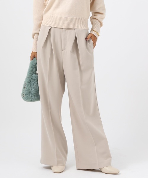 深いタックが入ったワイドシルエットパンツ ーーー ★おすすめポイント★ [1]しっかりとした肉感で暖かみのある素材感 [2]後ろウエストがゴムでストレスフリーな仕様 [3]トレンドのワイドシルエット [4]前身のウエストに深い重ねタック ーーー [fabric] 膨らみ感のあるポリエステル素材で、上質なダブルクロス素材。 ポリウレタン混なので、着心地も良く、しっかりとした肉感で暖かみもある素材感。 [design] 前身のウエストに深い重ねタックが入った、デザインタックパンツ。 トレンドのワイドシルエット。 後ろウエストにへリンボン柄の太めのゴム入りなので、デザインのアイキャッチにもなり、履きこみもストレスフリーな仕様に。 [styling] コンパクトなトップスを合わせて、コントラストを効かせたスタイリングがおすすめ。 また、ファーブルゾンや、ツイーディーなジャコットなど、ハーフ丈アウターとのスタイリングがトレンド感もあり◎ ------------------------------------- ≪お買い物をよりお楽しみいただくために≫ ◆商品のお気に入り登録(ハートマークをクリック) 完売カラーの再入荷通知や、完売間近の通知、セールの通知も受けることができます。 ◆ブランドのお気に入り登録 新商品や再入荷など、いち早くブランドのお得な情報を受け取ることができます。 -------------------------------------