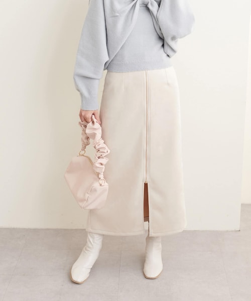 【2024AW natural couture】トレンド感と季節感たっぷりスカート■DesignトレンドのWジップと柔らかく肌触りのいいスエード地を使ったスカート。ポンチ素材を使用しているので軽量でストレッチ性があり、着心地が良いのが特徴。マットな質感が、どんなトップスにも合わせやすく、コーデに馴染みやすい1着です。S、M、Lとサイズ展開も豊富で身長問わずお召しいただけます。■Styling毛足のあるふんわりとしたニットでフェミニンにきめるのはもちろん、リブニットやジャケットとシンプルなキレイめスタイリングでも◎パーカーやスウェットと合わせてカジュアルダウンさせても、大人上品にきまります。■Fabric肌馴染みのいい柔らかな生地感。============透け感:なし裏地:なしポケット:あり伸縮性:ややあり光沢感:なし生地感:柔らかな生地感============※着用、お取り扱いの際は、商品に付いている品質表示とアテンションタグを必ずご確認ください。【お気に入り登録でお得な情報がいっぱい】・「商品のお気に入り登録」で再入荷通知や、ラスト1点の通知、セール通知をいち早く受け取ることができます。・「ブランドのお気に入り登録」で新商品や再入荷など、お得な情報を受け取ることができます!※店舗の入荷時期は商品によって異なります。店頭の在庫状況につきましては各店舗にてお問い合わせください。※撮影時の光の関係で、画面上の画像と実際のお色とでは若干の色差が生じる可能性がございます。また、ご覧いただいているモニター画面や、お使いのブラウザによっても、お色の違いがございますことをあらかじめご了承くださいませ。202410172024AW_natu24AW