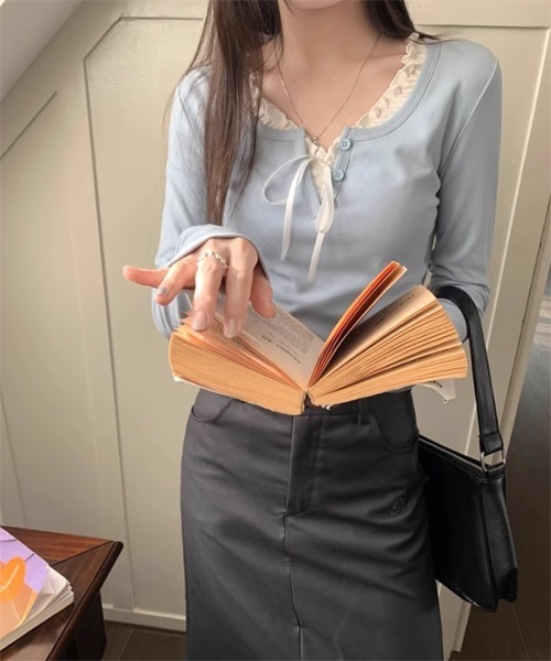 リボン×レースの組み合わせが可愛らしく落ち着いたお色味のカットソーです。襟回りがレースデザインになっているのでデコルテをきれいに魅せてくれます。ベロアのような素材で薄手なのにあたたかみのある肌触りです。デニムやナイロンパンツの合わせてカジュアルダウンさせても◎‥‥‥‥‥‥‥‥‥‥‥‥‥‥‥‥‥透け感:無伸縮性:有厚さ:普通サイズ感:タイト‥‥‥‥‥‥‥‥‥‥‥‥‥‥‥‥‥●サンプル品を使用している事もあり、サイズ感など多少異なる場合もございます。●パソコンのモニター、撮影の光量などにより画像と実物の色味が異なって見える場合がございます。●入荷時期・追加生産により画像・詳細と多少異なる場合がございます。■商品によって生地の他繊維の混紡、縫製の多少のほつれなどがある場合がございます。