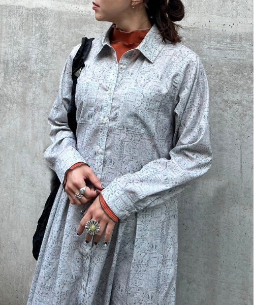 ■デザインオリジナルのペイズリーフラワー柄、シボ系の素材に総柄プリントを施して生地から作成したレトロワンピース。後ろウエストはゴムで前はタックのみ、すっきりとしたシルエットで、もちろんポケット付き◎さりげない配色カンヌキと、ベルトも通せる、巾のベルトループもこだわりPOINです!!今年っぽく、デニムとレイヤードして着るのがおすすめです!■素材・ウエストゴム:後ろ部分のみあり・ベルトループ:あり・伸縮性:なし・透け感:なし・裏地:なし・光沢感:なし・生地の厚み:薄い※生地寄りの画像が実際の色味と近いものとなります。※ご覧のモニター環境や撮影環境により実際のカラーと異なる場合がございますので画像をご参照の上、ご了承頂けますようお願い致します。
