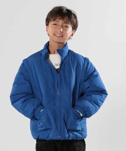 【デザイン】お袖を取り外してベストとしても着用可能な中綿アウターです。男女兼用で着用OKなシンプルな形は、合わせるアイテムを選ばないので通学用にもおすすめ!秋から冬まで長い期間活躍してくれるアイテムです。※ポケット数:横×2【素材】シャカシャカとした撥水機能の素材を使用しています。※裏地あり※照明の関係により、実際よりも色味が違って見える場合があります。また、パソコン・スマートフォンなどの環境により、若干製品と画像のカラーが異なる場合もございます。店舗へのお問い合わせ商品番号:122-49053●製品寸法:11(110cm):着丈45cm B84cm 袖丈37cm 肩幅33cm12(120cm):着丈48cm B89cm 袖丈40cm 肩幅36cm13(130cm):着丈51cm B94cm 袖丈43cm 肩幅38cm14(140cm):着丈54cm B98cm 袖丈45cm 肩幅40cm備考:重量:11(110cm)約335g