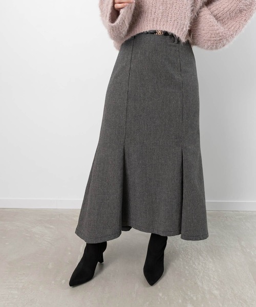 ◆2024AW新商品◆ スタイルアップ効果のある美シルエットのマーメイドスカート。 腰周りはすっきり見せつつ、裾に向かって贅沢に広がるラインがポイント。 身体のラインを拾い過ぎない厚みのある生地を使用しているので、 秋冬の重厚感漂うスタイリングにマッチする1着です。 POINT ・裾に向かって上品に広がるマーメイドシルエット ・すっきり見えする腰周り ・高めのウエスト位置でスタイルアップ効果あり ・ウエストは折りかえしても着用可能な2WAY仕様 ・ウエストの後ろは一部ゴム入りでストレスフリーな着心地 ・身体のラインを拾いすぎないしっかりとした生地感 ・ミックスは上品な千鳥格子柄の生地を使用 ・セットの上品なモノグラム金具ベルトもポイント COORDINATE 幅広いトップスと相性が良く、コーディネートの幅が広がります。 ウエストの後ろは一部ゴム入りなのでトップスをインしてももたつかずに着用していただけます。 - - - - - - - - - - - - - - - 洗濯方法:手洗い可 透け感:なし 裏地:あり 伸縮性:なし 生地の厚さ:普通 - - - - - - - - - - - - - - - 【スカート裏地:裾周り】 0:160 1:168