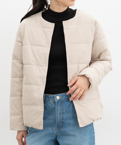 軽いのにあったか♪【デザイン】首元のおしゃれを楽しめるクルーネック。ややコンパクトなシルエットと、軽い着心地が特徴。【素材・機能】中綿は環境に優しい再生ポリエステルを使用した、ふんわり柔らかなマイクロファイバー。優れた保温力と軽量感を兼ね備え、まるでダウンのような暖かさのエコ素材。表地は『非フッ素撥水加工』で、雨や雪の日も安心。ご自宅で洗濯も可能。【スタイル】シンプルなデザインで、どんなボトムスとも好相性。大きめアウターのインナーとして合わせるのもおすすめ。※袖口・裾部分ゴム品番:673-42-8355