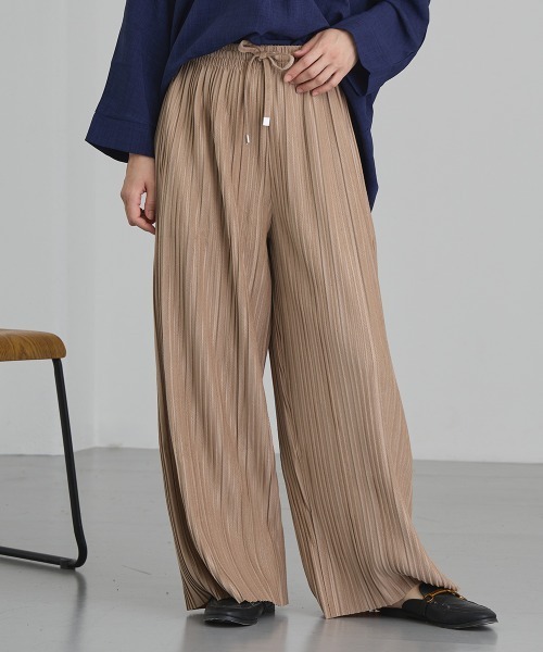 ■POINT ヘリンボーン柄のランダムなプリーツで、動きのあるスタイルを演出してくれます。また、光沢感がありクラシカルな雰囲気を出してくれるのが特徴です。ウエストゴムでゆったりと着用できるアイテムです。 ■FABRIC ベロア素材で、滑らかな光沢感ある生地が特徴です。保温性が高く、暖かさを保ちながらスタイリッシュに着こなせます。 ………………… 透け感:なし 裏地:なし ………………… ★商品のお気に入り登録 登録すると、完売しても再入荷時に通知を受け取ることができます。 ほかにもお得な特典があるかもしれません♪ ★ブランドのお気に入り登録 新商品や再入荷などの情報を受け取ることができますので、是非ご登録ください♪