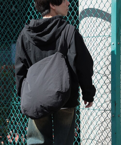 トレンド感と高い収納力が魅力のデザイン新生活の様々シーンに馴染む高い汎用性! ■デザイン A4サイズも楽々入る大容量のショルダーバッグ。外側にファスナーポケットが付いているため収納に優れており、利便性の高い仕様になっています。中綿の入ったボリュームのあるシルエットでトレンド感があり、マットでいながらな自然な光沢感でデイリーに使いやすいバッグです。 ■コーディネート ブラックとチャコールのカラーリングはスウェットやニット等のカジュアルなスタイリングは勿論、シャツやジャケットといったきれいめな着こなしにも相性が良くお使いいただけます。 ■素材 マットな質感のコットンナイロン素材を使用。ボリュームがありながらも軽やかで使い勝手の良いところも嬉しいポイントです。 生地の厚さ:普 【スタッフレビュー】 スタッフ:樋口 満 身長:174cm / 普段サイズ: / 着用サイズ: サイズ感: 背中から腰にかけて沿うような大きさのボディバッグ。 素材感: どんなコーディネートにも採用できる癖のない素材感。 ポイント: ショルダー部分をクシュっと縮めることができ、見た目のアクセントを加えられます。通 透け感:なし 伸縮性:なし 光沢感:ややあり 裏地:あり