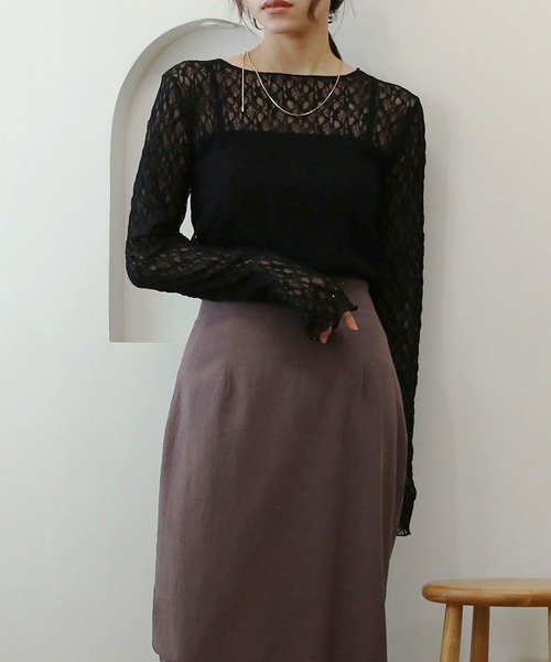 シアー感が可愛らしく、上品なレースが大人っぽいレーストップス。インナーにタンクやワンピ、スウェットなどを合わせてレイヤードコーデが楽しめます♪【サイズ】FREE(フリーサイズ)総丈:61cm肩幅:38cm身幅:42cm袖丈:63cm袖口:8cmアームホール:18cm裾幅:43cm【素材】ナイロン 92% ポリウレタン8%【カラー】アイボリー / ブラウン / ブラック【備考】・透け感:あり / 伸縮性:あり / 裏地:なし / ポケット:なし ※ご利用の端末環境により、商品画像と実物では多少色合いが異なって見える場合がございます。※お洗濯、アイロンの際は内タグの品質表示を必ずご確認ください。※商品にはたたみシワ等のシワがついている場合がございます。※染料による匂いが抜けきれず、特有の匂いがする場合がございます。-NOAHL(ノアル) -「今ワタシたちが本当に着たい服」ニュアンスカラーをベースに、自然体で女性らしい雰囲気を。決まりすぎないこなれ感のあるスタイルにこだわりシンプルなのにどこかおしゃれを感じる“センスよく魅せる1着”を提案します。どんな瞬間もナチュラルに彩り柔らかに纏う日常に。-商品のお気に入り登録-完売カラーの再入荷通知や、ラスト1点、セールの通知をお知らせいたします。-ブランドお気に入り登録-新商品や再入荷など、いち早くブランドの情報を受け取ることができます。