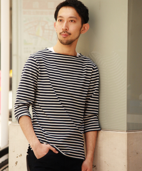 サラリとしたタッチが特徴のコットンを使用し、しっかりと度詰めに編んむことで適度なハリと仕立て映えしたボートネックアイテムです。7分袖丈にする事で長袖シャツを捲ったスタイリングにはもちろん、寒暖差のあるシーズンにも1枚で着用する事ができます。 首廻りがすっきりしているのも特徴です。