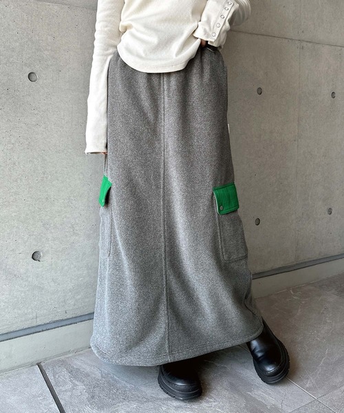 軽くて柔らかなフリース素材を使用した新作《フリース・カーゴスカート》が入荷しました。適度なボリューム感がありながら、肌触り柔らかで、暖かく、軽い着用感が魅力のフリース素材を採用。左脇には「ANME」別注ピスネーム付き。杢グレーは差し色がアクセントの《配色仕様》、ブラックとネイビーはベーシックな《同色仕様》、お好みに合わせてカラバリが選べるのもポイントです。楽ちんなゴム仕様のウエストは、内側に調節可能なドロスト紐付き。デザインポイントのカーゴポケットと、便利なサイドポケットとバックポケット付き。ポケット袋布は暖かみのある起毛メッシュ素材を採用。左ウエストベルト下にはコードループ付きで、鍵やコインケースなどを付けて頂けるデザインに。裾の内部にドロストを通した仕様で、フレアとバルーンの2wayシルエットをお楽しみ頂けるアイテムです。[同素材の展開アイテム]※セットアップで着用可能・フリースアノラック(商品番号:2600060)※裏地:無し※撮影時のライティング、ご覧になっているモニター・PC環境により実際の商品と色味が異なって見える場合がございます。ご了承の上お買い求め下さい。素材:【本体】ポリエステル100%【別布】ナイロン100%【袋布】ポリエステル100%≪備考≫伸縮性:あり透け感:なし生地の厚さ:やや厚手肌ざわり:柔らかいその他:フリース生産地:中国手洗い:可 ドライクリーニング:可 ウェットクリーニング:可