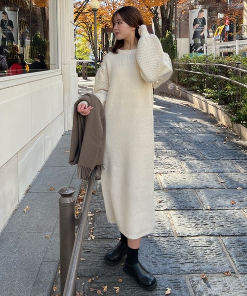 ■point袖のデザインが特徴的なニットワンピースです肩の切り替え部分にはややタックが入っており、袖のボリューム感が女性らしさを引き立たせてくれる1枚です。首周りをすっきり見せ、体のラインを拾いにくいシルエットにもこだわりました。アウターを合わせられる袖のボリュームなので、真冬も活躍してくれるアイテムです!小物合わせでカジュアルにもきれいめにも着用いただけます。■注意事項 ・生産の過程で1~2cmの個体差が生じる場合があります・サンプルにて撮影をしておりますので、実際の商品とは仕様や加工・サイズ等が若干異なる場合がございます・ご覧のモニター環境や撮影環境により、実物の商品と多少色味が異なって見える場合がございます・アテンションタグや洗濯表示を必ずご確認の上ご使用下さい