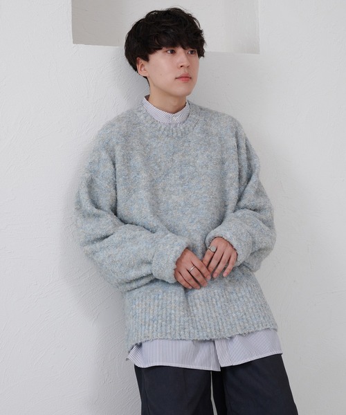 ■point 暖かみのあるブークレを使用したオーバーサイズのニット。 厚みのある生地感となっており、 収縮性を加えることで着心地の良さにもこだわっております。 袖丈を通常のニットと比較して長めにとっているため、 袖を1〜2ロールしてご着用いただくことで 袖元に溜まりを作ることが可能となっております。 裾のリブは太めに取りつつ、 サイドには大きめのスリットをいれているため、 シャツなどをご着用いただいた際に レイヤードをしてお楽しみいただけます。 ■注意事項 ・生産の過程で1~2cmの個体差が生じる場合があります ・サンプルにて撮影をしておりますので、実際の商品とは仕様や加工・サイズ等が若干異なる場合がございます ・ご覧のモニター環境や撮影環境により、実物の商品と多少色味が異なって見える場合がございます ・アテンションタグや洗濯表示を必ずご確認の上ご使用下さい