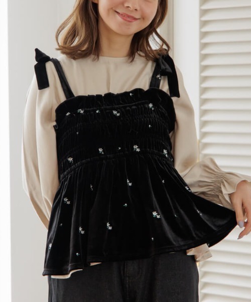 ■デザインベロアにオリジナル刺繍を施した、秋冬シーズンにぴったりなビスチェ♡胸元にたっぷり付いたフリルがガーリーなデザインポイントです。お手持ちのブラウスやカットソーに合わせるだけで上品なムードが漂うコーデに♪ペプラムシルエットと高めのウエスト切り替えでスタイルアップ効果も期待できます!大人可愛い太めのリボン肩紐♡細部までこだわりました。デイリー使いやデート、イベントなど幅広いシーンで活躍する一枚です。同素材のvelour embroidery pantsとのセットアップコーデはお食事会やオケージョンに◎glad buggy pants2、shabby lace top4と合わせた抜け感のあるflowerらしいコーディネートがおすすめ!■flower/フラワー「love&joy」をコンセプトに、商品に愛を込め、お客様に楽しんでいただけるような、ナチュラルでガーリーなアイテムを提案していきます。【お買い物を上手にお楽しみいただくためのPOINT2つ】◎ 購入ボタン横の ♡ (ハートマーク)をクリック! 完売カラーの再入荷通知、残り1点の通知、セールの通知を受け取れます。 (クリックまたはタップで商品のお気に入り登録♪)◎ ショップのトップページにある ♡ (ハートマーク)「お気に入りショップに追加」をクリック! 新商品や再入荷等、いち早くブランドのお得な情報を受け取れます。 (ブランドのお気に入り登録♪)