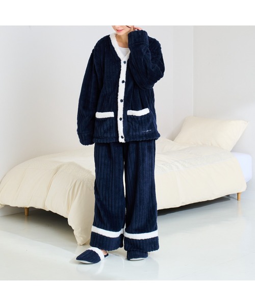柔らかくあたたかいフリース素材のペアで着られるパジャマです。 レディースサイズはホワイト、メンズサイズはネイビーをご用意。おうちで仲良くゆっくり過ごすのにぴったりです。 メンズサイズはゆったりとオーバーサイズで着たい女性の方にもおすすめです。 ペアの方へのギフトにも喜ばれるアイテムで、同デザインのルームシューズと合わせるのもおすすめです。 ※静電気防止加工付き 【注意事項】 ■洗濯機:可(ネット使用) ■ドライクリーニング:不可 ■タンブル乾燥:不可 ■アイロン:不可 ■濡れた状態でほかの洗濯物と一緒に重ねないでください。 ■素材の特性上、洗濯後、多少縮みが生じることがあります。 ■蛍光増白剤の入っていない洗剤をご使用ください。 ■柔軟剤のご使用はお避けください。 ■毛羽乱れ、毛羽立ち、毛玉が発生することがありますので、他の物と分けて単独でお洗濯してください。特に裏面は毛玉が生じやすくなっています。 ■ストーブや火のそばなどの高温のものに近づけないでください。引火して燃え広がる恐れがあります。 ■素材の特性上、直射日光やライトに長時間照らされると変色および劣化につながりますのでご注意ください。 ■素材の特性上、ご使用や経年により毛が乱れ寝てしまうような見え方になることがありますが素材の特性としてご理解ください。 ■静電気防止加工を施しています。ご使用頻度やお洗濯回数により効果は徐々に弱くなります。 ■商品の特性上、毛羽が飛び出してきた場合は無理に引っ張らず、ハサミ等でカットしてください。 ■原産国:中国