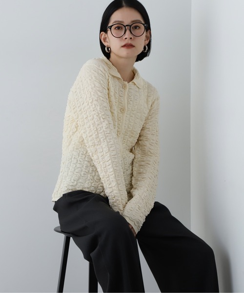 【青木瞳さん着用】表面感のあるふくれシャーリングがアクセントになる襟付きニットカーディガン。キャミワンピースやジャンスカ等の羽織りにも、すべて釦を留めてトップスのようにも着られるデザインです。やや透ける素材のため、お持ちのインナーを合わせるのがオススメ。裾は一番下まで釦が付いていないため、スリット風な見え方に。スカートにもパンツコーデにも着回せます。**********************透け感:なし裏地:なし伸縮性:あり光沢感:なし生地の厚さ:普通**********************●取り扱いについては、商品についている品質表示でご確認ください。●撮影はサンプル商品で行っている為、仕様とサイズが異なる場合がございます。●スタジオ及び屋外で撮影した着用画像は、光の当たり具合やご覧のモニターによって色味が違って見える場合があります。予めご了承ください。●生産時期により色・素材・サイズ感など多少異なる場合がございます。予めご了承ください。≪お買い物をよりお楽しみいただくために≫・「商品のお気に入り登録」再入荷通知や、ラストの通知、セール通知も受け取ることができます。・「ブランドのお気に入り登録」新商品や再入荷など、お得な情報を受け取ることができます。