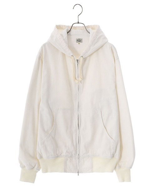 シルクネップによる上品さと粗野感をあわせ持ったジップパーカー 【デザイン】 ・ヴィンテージのジップパーカーをベースに、コットン/シルクのダック素材でライトに仕上げた一着 ・3本針巻き縫いのディテールはヴィンテージを踏襲 ・フロントジッパーには美しさと滑らかな手触りを追及した EXCELLAファスナーを使用 ・裏地に肌触りの良いコットンモールスキン地を採用し、着心地に優れたジャケット ・こちらのアイテムは 「24A-GL42430 / COTTON/SILK NEP DUCK BALLOON PANTS」 と同生地になっており、セットアップでの着用も可能 【素材】 ・旧式のシャトル織機で織り上げたダック生地 ・タテ糸はコットン16番手の引き揃え、ヨコ糸には10番手のシルクネップ糸を使用 ・ゆっくりと織り上げているため、より膨らみも加わった素材 ・裏地には光沢感や肌触りに優れた100番手双糸のモールスキン地を採用 【シルエット・サイズ】 ・ややゆとりのあるレギュラーサイズ ・リラックスシルエットで着用する場合はワンサイズUPがおすすめ