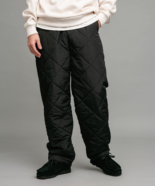 冬のアウトドアシーンにうってつけの保温力 ナイロンキルトを使用した中綿パンツ。 三角キルト柄が特徴的です。 中綿を使用しており非常に温かく、冬のアウトドアシーンでも活躍します。 ■POINT ・シャカ感のある中綿キルトの生地 ・撥水加工で雨天時も安心 ・ウエストゴム、裾を絞れるボタンつき ・やや厚みのあるボリューム感 【2024 Autumn/Winter】【24AW】 ※商品の特性上、縫い目部分からダウンやフェザー、中綿などの詰め物が出ることがありますので、ご注意ください。 ※商品画像は、光の当たり具合やパソコンなどの閲覧環境により、実際の色味と異なって見える場合がございます。予めご了承ください。 ※商品の色味の目安は、商品単体の画像をご参照ください。 ▼お気に入り登録のおすすめ▼ お気に入り登録商品は、マイページにて現在の価格情報や在庫状況の確認が可能です。 お買い物リストの管理に是非ご利用下さい。 素材感 透け感 : なし 伸縮性 : なし 裏地 : あり 光沢 : なし ポケット : あり