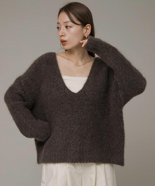 ヘアリーな素材感が魅力のVネックニット 深いVネックがレイヤード気分の今年にぴったりのニット。 ふわふわの糸を編み立て、裏目使いをしています。 色がミックスされているふわふわの糸は着るだけで気分のあがる一着◎ 程よくゆったりとしたシルエットなのでボトムを選ばず、スカートともパンツともバランス良くお召しいただけます。 POINT ・ご自宅で手洗い可能 ・豊富なカラー展開 COORDINATE ロンTEEやタートルネックとのレイヤードはもちろん、タンクトップを合わせたヘルシーな着こなしもおすすめです。 【2024 Autumn/Winter】【24AW】 総重量 : 約380g ※商品画像は、光の当たり具合やパソコンなどの閲覧環境により、実際の色味と異なって見える場合がございます。予めご了承ください。 ※商品の色味の目安は、商品単体の画像をご参照ください。 ▼お気に入り登録のおすすめ▼ お気に入り登録商品は、マイページにて現在の価格情報や在庫状況の確認が可能です。 お買い物リストの管理に是非ご利用下さい。 素材感 透け感 : なし 伸縮性 : あり 裏地 : なし 光沢 : なし ポケット : なし FREE