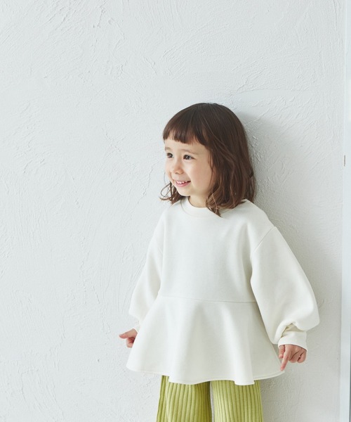 大人っぽいペプラムデザインの裏起毛プルオーバーです。 ぽわんとしたボリュームたっぷりの袖が可愛らしいポイントです。 レディースサイズもご用意しているのでリンクコーデもお楽しみ頂けます。 【ポケット】 なし 【伸縮性】 あり 【透け感】 透けない 【クリーニング】 洗濯機洗い可(ネット使用) 【裏地】 なし 【濃色品・色落ち色移り】 濃色品は、色落ち・色移りをする恐れがあります。摩擦(特に湿った状態での摩擦)や汗や雨などで他の衣料や下着(特に白物)に色移りしますので、十分ご注意ください。 モニター・環境等により実際の商品と色味が多少異なって表示される場合がございます。 また、生産時期により色味が若干異なる場合がございます。予めご了承ください。