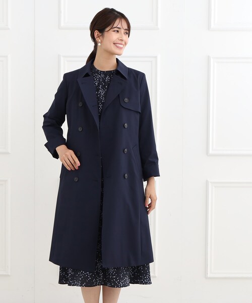 【デザイン】 中綿ライナー付きのベーシックなトレンチコート。 ベーシックながらも少しラフさのある衿で、背ヨークの丈を少し長くしバランス調整をした定番トレンチコートになっています。 ※ポケット数:横×2 【素材】 軽量で柔らかく、横方向にストレッチ性のある着心地の良いトレンチコート素材です。 特殊撚糸により凹凸と膨らみを持たせたコットンライクなポリエステルのタスラン糸を使用しています。 ※裏地あり ※袖なしライナー付き ※照明の関係により、実際よりも色味が違って見える場合があります。また、パソコン・スマートフォンなどの環境により、若干製品と画像のカラーが異なる場合もございます。 モデル情報:身長167cm B80 W60 H87 着用サイズ:09(M) 店舗へのお問い合わせ商品番号:101-92001 ●製品寸法: 05(SS):着丈98cm B97cm 袖丈57cm 肩幅38cm 07(S):着丈100cm B100cm 袖丈59cm 肩幅40cm 09(M):着丈100cm B103cm 袖丈59cm 肩幅40cm 11(L):着丈100cm B106cm 袖丈59cm 肩幅41cm 13(LL):着丈101cm B109cm 袖丈60cm 肩幅41cm 15(3L):着丈102cm B114cm 袖丈60cm 肩幅43cm 17(4L):着丈102cm B119cm 袖丈60cm 肩幅44cm 備考:重量:サンプルサイズ約810g