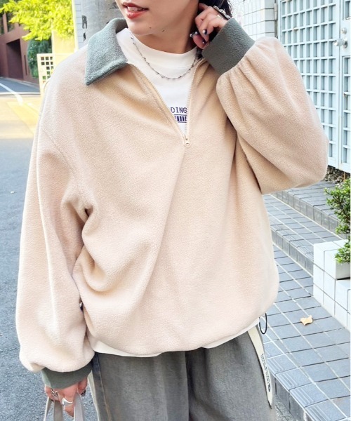 ■デザイン古着ライクなデザインがポイントのフリースハーフジッププルオーバー保温性、着心地等も抜群ながら、配色がカワイイので一枚でもお洒落な着こなしができるアイテム。胸元のワンポイント、ネック、リブ部分も切り替えデザインになっていて一枚でコーデの主役になります。■素材・伸縮性:なし・透け感:なし・裏地:なし・光沢感:なし・生地の厚み:薄い※生地寄りの画像が実際の色味と近いものとなります。※ご覧のモニター環境や撮影環境により実際のカラーと異なる場合がございますので画像をご参照の上、ご了承頂けますようお願い致します。
