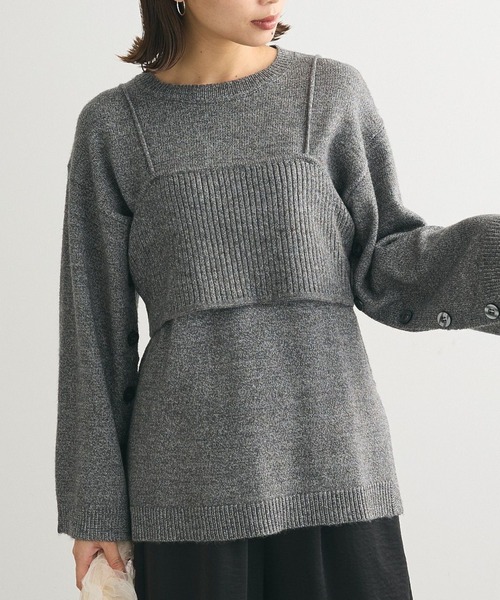 プルオーバーとキャミチュニックがセットになったニットアイテム。セットでききるのはもちろん、それぞれ別で着用もできる万能アイテムです。 袖に並んだボタンやバックのりぼんディテールなどほんのりフェミニンなデザインが魅力のポイント。 秋冬にぴったりなカラーバリエーションでデイリーユースに最適なおすすめのアイテムです。 透け感[なし] 生地の厚さ[普通] 光沢感[なし] 伸縮性[あり] 裏地[なし] ポケット[なし] ※モデル着用画像は、光の当たり具合で色味が違って見える場合がございます。 ※お使いのモニター環境によって商品の色味が違って見える場合がございます。 ●Green Parks (fuuwa / topic / sara)● (グリーン パークス) 20以上の人気ブランドを取り扱う、全国に約320店舗展開するアパレルセレクトショップ。 ベーシックながらもさりげなくトレンドを取り入れたオリジナルブランドchocol raffine robeも展開。 ▼ 商品のお気に入り登録がおすすめです ▼ 商品ページ内のハートマークをクリック。完売時の再入荷や、最後の1点の通知、コーディネート画像がアップされたとき、お得なお値下げの際の通知を受ける事ができます。 【お知らせ】ページでも通知が確認できます。