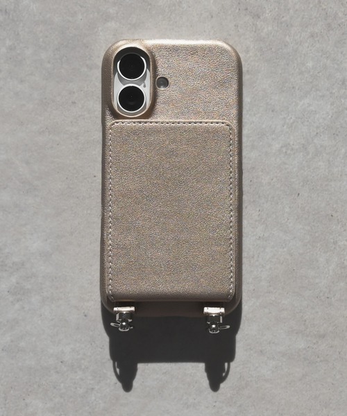 定番のブラックからトレンドのメタリックカラーまでファッションの一部として取り入れたいスマホケースが登場 !!背面にはカードポケットが2つとミラーがついていて便利な仕様となっています。そのまま単体でお使いいただいくのはもちろん、丸カン付きなのでショルダーストラップやチャームと合わせて自分好みにアレンジするのも◎◻︎対応機種iPhone16◻︎その他の機種iPhone16pro※カラーBlackはメタリック素材ではありません。
