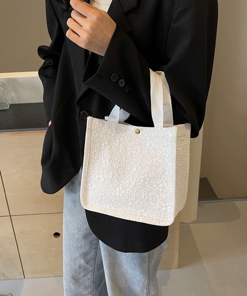 小花柄が可愛いミニトートバッグ。 サブバッグやちょっとしたお散歩、ランチバッグにもおすすめです♪ 韓国ファッションが好きの方にもおすすめです◎ 【Mignonjour】 Mignonjourはフランス語のかわいい[mignon]と日[jour]を掛け合わせた造語です。毎日ワクワクしたいという女性の想いをカタチに… 自分がかわいいと思うアクセサリーや小物に囲まれて、キラキラした毎日を送れるように… そんな願いを込めて現役のジュエリーショップスタッフが 「かわいい」や「トレンド感」「自分らしさ」をテーマに セレクトしたアイテムをご提案いたします。 ハート♡マークのお気に入り登録がおすすめです♪ 完売アイテムの再入荷、セールなど嬉しい情報を受け取れます。 商品に欠陥がある場合を除き、基本的には返品、交換はいたしかねます。 ※撮影・モニター環境等により実際の商品の色味と異なって見える場合がございます。あらかじめご了承ください。 ※入荷時期により、商品のディティール(ボタンの仕様など)が若干異なる場合がございます。あらかじめご了承ください。