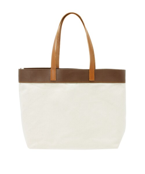 A4サイズもすっぽり入るレザーコンビのトートバックです。デザインもキャンバス地がカジュアルなスタイリングにマッチします。開け口も広く、手さげも肩にかけられるサイズで、使いやすいバックです。