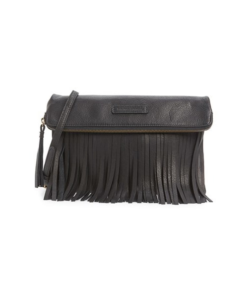 70s-inspired fringe lends plenty of personality to a fold-over crossbody bag shaped from hand-burnished leather with a distinctive pebbled grain. Top zip closure. Optional, adjustable crossbody strap. Leather. By Frye; imported.