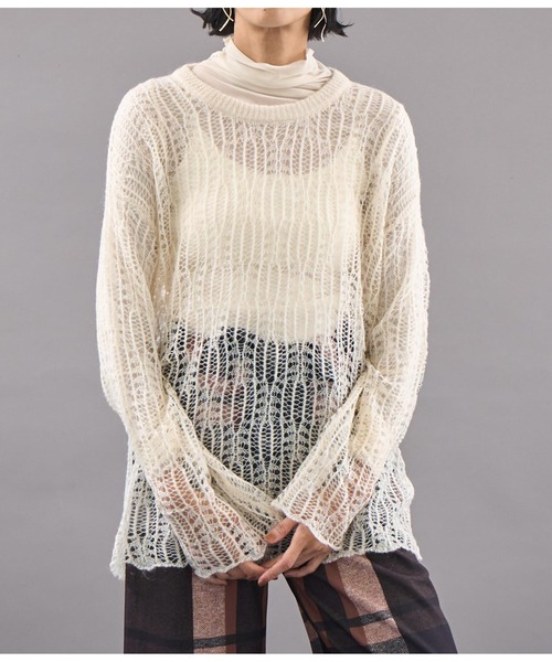 透かし編みが軽やかな印象のニット。 ●大きめなシルエットが適度なルーズ感を生み出し、トレンドライクな雰囲気に。 ●アクセントになるカラーで、普段のコーディネートに一枚プラスするだけでワンランク上のスタイリングを楽しめます。 ●スッキリとした首元のラインを活用してシアーハイネックなどを合わせても◎ ●程よく肌見せができ、合わせるインナー次第でさまざまな着こなしが楽しめます。 ※ストレッチあり※裏地なし ※透ける素材になっております。 ※ニット素材のため、伸縮性があり記載しているサイズと若干異なる場合がございます。予めご了承ください。 ※商品のお取扱いに関しましては、商品に付属のアテンションカード、洗濯ネームをご覧ください。 ※モデル着用画像は光の当たり具合で色味が違って見える場合がございます。 ※商品の色味の目安は、商品単体の画像をご参照ください。 【お買いものをお楽しみいただく為に!】 ▼商品のお気に入り登録 完売カラーの再入荷通知や、ラスト1点の通知、セールの通知も受け取ることができます。 ▼ブランドのお気に入り登録 新商品や再入荷など、いち早くブランドのお得な情報を受け取ることができます。