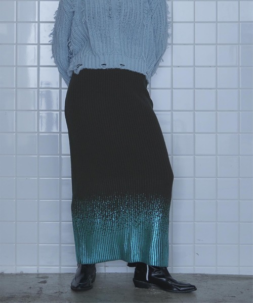 裾の箔プリントがさりげなく輝く、上品な大人のニットスカート。 ■Point ・箔プリントがアクセント:裾に施された箔プリントが華やかさをプラスし、シンプルながらも洗練された印象に。 ・Iラインシルエットで細見え:縦のラインを強調し、スタイルアップ効果抜群。 ・リブデザインで脚長効果:縦リブが自然に脚を長く見せ、すっきりとしたシルエットを演出。 ・バックスリット入り:足さばきがしやすく、動きやすさとデザイン性を両立。 ■Coordination ・きれいめコーデ:シンプルなブラウスやタートルネックニットと合わせて、洗練されたスタイルに。 ・カジュアルダウン:オーバーサイズのスウェットやTシャツと組み合わせると、程よい抜け感のある大人カジュアルに。 ・セットアップ風コーデ:同系色のニットトップスと合わせれば、統一感のある上品な着こなしが完成◎ 上品さと程よいカジュアル感を兼ね備えた、オンオフ問わず使える一枚です。 ※当商品は機械による生産の過程上、どうしても"生地を織る際の糸の継ぎ目"や多少の"ほつれ"、他繊維の"混紡"、また、形やサイズや柄に多少の"誤差"が生じる場合がございます。 ※サイズは、実寸サイズを測っているため多少誤差がでる場合があります。製造工程の関係上、各採寸箇所実寸(平置き)より【約-3cm~+3cm】程度は誤差の許容範囲とさせて頂いておりますので、予めご了承くださいませ。 ※メーカーより密封状態で入庫し、検品時に再度袋詰めを行っておりますが、素材により染料等の臭いが強い場合がございます。 ※発送上の状態によって商品がシワになる場合がございます。 ※商品により色落ち・色移りがある場合がございますので、品質表示をご確認の上、お取り扱いにご注意くださいませ。 【伸縮性】あり 【透け感】なし