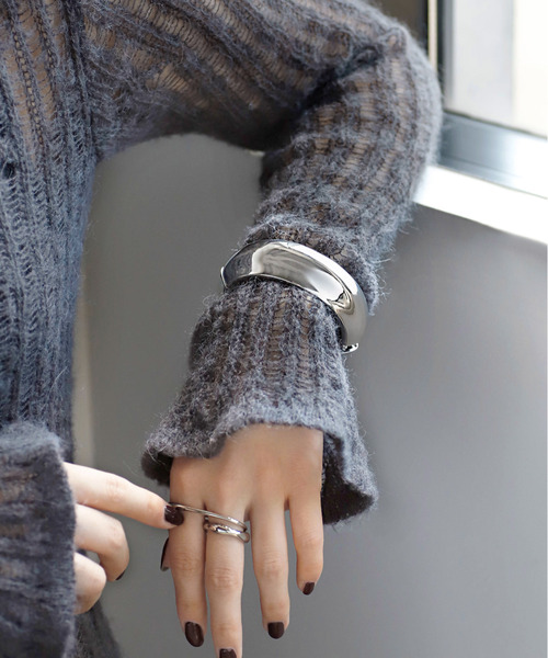 ボリューム感のあるメタルがシャープな輝きを放ち、コーディネートのアクセントになるバングル。開閉式で簡単に着脱できる優秀アイテムです。※ATTENTION※■微細なキズや製造ムラはすべての商品に含まれます。