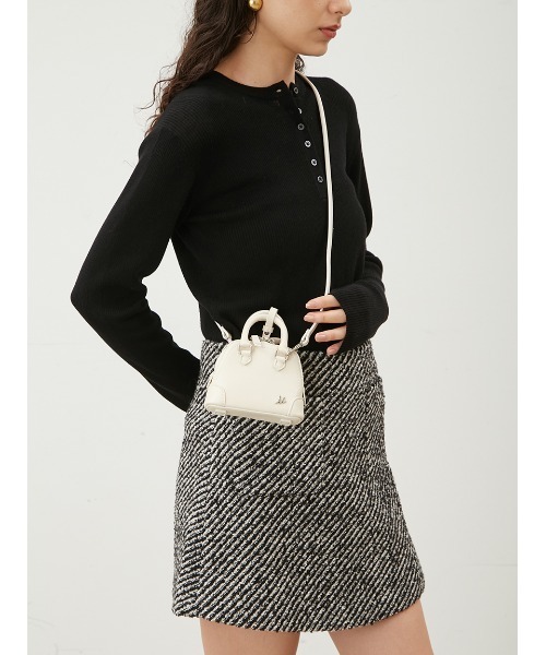 【チャームにもなる、キュートなミニチュアバッグ。カラーも豊富に登場!】 【Design/Styling】 ミラのアイコン的存在、ボストン型のバッグ。その大人気バッグをそっくりそのまま、リアルなミニチュアに仕上げました。 コロンとした三角形のフォルムは、本当のバッグそっくり。ZIPも実際に開閉できるほど精巧に作られていて、ちょっとした小物を入れることもできるようになっている本気仕様です。 バッグにチャームをつけてデコレートするのがトレンドになっている今シーズン。このミニバッグも、好きなマイバッグにつけられるように、チャーム仕様にしています。 チャームとしてバッグに付けるのはもちろん、取り外しできるストラップまでついているので、アクセ感覚でいろいろ遊ぶのもキュート。大人の余裕をたっぷり楽しめる、ユーモラスでホットなアイテムです。 【Fabric】 高級感のある合皮で、モデルになったボストンバックと、まったく同様の4色展開です。定番人気の<ブラック>、上品でエレガントな<アイボリー>、リッチな印象の<キャメル>、差し色にもなるキュートな<オレンジ>があります。 ※照明の関係により、実際よりも色味が違って見える場合があります。 またパソコン・スマートフォンなどの環境により、若干製品と画像のカラーが異なる場合もございます。予めご了承ください。 商品の色味は、商品単品画像をご参照下さい。 ※商品画像はサンプルのため、色味やサイズ等の仕様に変更がある場合がございますので、予めご了承ください。