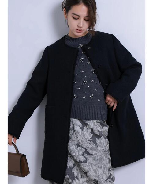 2024 AUTUMN&WINTER COLLECTION ネコアシツィードクラシカルコート ネコアシツイードで表情豊かに仕上げたクラシカルコート。中空糸(ペンネ)を使用しているので軽い羽織り心地を実現。縁取りに施されたフリンジもさりげないアクセントをプラスしてくれます。裾に向かって緩やかに広がるフレアシルエットが、大人の女性らしい装いを演出。オンにもオフにもシーンを問わずに活躍してくれるアイテムです。 ............................................................................................ ※商品画像は、撮影環境やお客様のご利用のPC・スマートフォンのモニター環境などにより実物と色味に差異がある場合がございます。 ※着用画像はサンプルを使用して撮影しております。製品と一部仕様が異なる場合がございます。予めご了承ください。