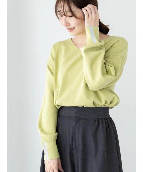 キラキラと輝くラメをミックスして上品な華やかさを演出するニット。袖口にはラメラインのアクセントを加えました。ゆるやかなVネックでヘルシーな大人の女性らしい印象に。しっとりとした優しい肌触りで着心地もよく、オフィスやデートコーデなどにも活躍してくれるアイテムです。※商品画像は、撮影環境やお客様のご利用のPC・スマートフォンのモニター環境などにより実物と色味に差異がある場合がございます。
