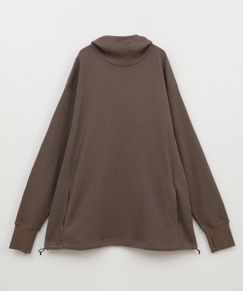 【品よくスポーティーな度詰めサーマルフーディー】 スポーティーでありながら、気品ある光沢がある度詰めサーマル素材を使用したフーディー。 スポーツ&アウトドアからタウンユースまで様々なシーンに対応出来る、汎用性の高い一着です。 【デザイン/素材】 肉厚ながら、表面の凹凸感によりドライタッチな着心地。 襟元が高く設定されており、デザイン性に加え首元の保温性もアップさせます。 【シルエット】 リラックス感のあるシルエットが、身体を動かしやすい柔軟さとスマートな印象を両立。 裾にはアジャスター付きスピンドルを搭載しており、気分に合わせてシルエットに変化を加えられます。 【ディテール】 袖口には親指を通すことで袖が捲れ上がるのを防ぎ、防寒効果もあるサムホール、脇にはデザインに馴染んだ大きめのシームポケットを搭載し、デザイン性と機能性を兼ね備えています。 モデル:身長:184cm バスト:94cm ウェスト:73cm ヒップ:95cm 着用サイズ:03(L) ※照明・光の加減、PCやスマートフォンなどの環境により、製品と画像のカラーの見え方が異なる場合がございます。 ※画像はサンプルのため、色味やサイズ等の仕様が変更になる場合がございます。 ※サイズは弊社規定の採寸によって記載しておりますが、若干の個体差が生じる場合がございます。
