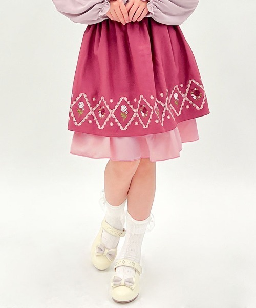 【アイテム説明】 裾に施されたバラのパネル刺繍が華やかなスカートです。 後ろウエストはゴム仕様で着脱しやすい仕様に。 【デザイン】 バラ×小花の華やかな刺繍は、スカート本体の色に合わせてカラーの印象を変えたデザイン、 ピンクはキュートに、コンはおしゃまに、仕上げたこだわりのカラーです。 裾から覗くシフォンフリルでガーリーさをプラス。 【コーディネート】 刺繍襟ケープ付きブラウス(DL91X01KO)の襟刺繍と、スカートの裾刺繍はカラーを合わせたセットアップアイテム。 発表会や七五三などにもピッタリなお出かけ着です。 ▽ axes femme kids * アクシーズファムキッズ & axes femme PETIT LADY * アクシーズファムプチレディ axes femmeのテイストに、 キュートさをプラスしたkids。ちょっぴり大人なPETIT LADY。 女の子のオシャレを叶える フェミニンガーリースタイル ********************** .。.:? お気に入り登録のおすすめ ?:.。. ∇気になるアイテムを登録∇ ハートをクリックしてお気に入りに登録すると 完売カラーの再入荷やラスト1点の通知、セールの通知を受けとることができます。 ∇ブランドを登録∇ 新商品や再入荷、セール通知など、いち早くブランドの情報を受けとることができます。 是非ご利用頂き、お買い物をお楽しみ下さい。 .。.:? 商品について ?:.。. ・サイト上のカラー名と、お届け商品に記載されているカラー名が異なる場合がございます。 ・商品の色味は、撮影場所や光のあたり具合、お客様のお使いのPCのモニター環境などにより色味が違って見える場合がございます。 予めご了承の上ご注文下さい。 .。.:? 返品・キャンセルについて ?:.。. ・着用、洗濯後の返品は致かねます。 ・商品到着後、着用前に商品を確認して頂きますようお願い致します。