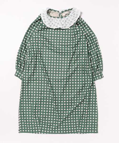 KIDS size: S(115-125cm) M(125-135cm) L(135-145cm) XL(145-155cm) LADIES size:F(155-165cm) No.243-0105-2 着るだけで主役級のインパクトがある、チェックの生地をたっぷりと使ったワンピースです。 丸みを帯びたコクーンシルエットや柔らかなフリンジチェックの襟が、程よいゆるやかさを演出。 ベレー帽やタイツといった小物のアレンジ次第で、モダンにもレトロにも印象付けられる1着です。 透け感:なし 生地の厚さ:普通 伸縮性:あり